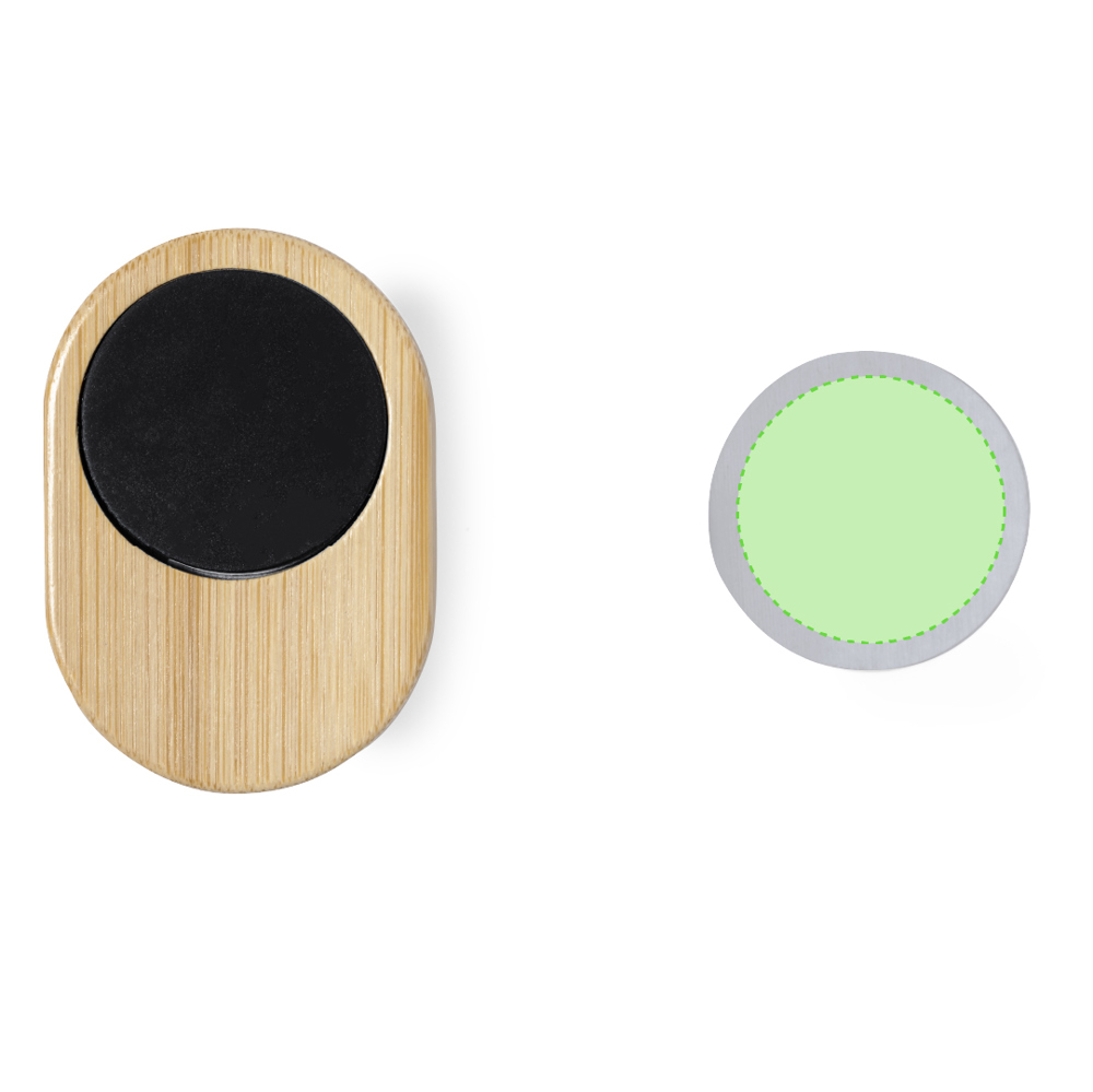 Lüftungshalterung für Smartphones aus Bambus. Bequeme und sichere magnetische Befestigung. Inklusive Klebering. Präsentiert in einer individuellen Ökodesign-Box aus Kraftkarton.Materialien wie Bambus fördern die Verwendung von natürlichen Rohstoffen und reduzieren die Schadstoffemissionen. Es handelt sich um eine sehr widerstandsfähige Pflanze, die sich durch ein vielseitiges Wachstum und eine schnelle Regeneration auszeichnet und eine hervorragende Alternative zur Verwendung von herkömmlichem Holz darstellt.