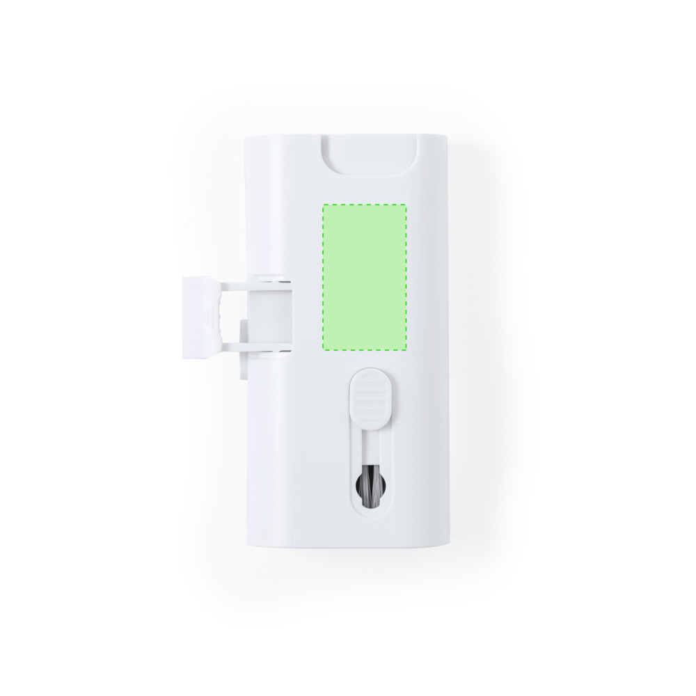 Komplettes Reinigungsset mit 6 Funktionen, speziell für die Pflege und Wartung von technischen Geräten entwickelt. Alle Zubehörteile befinden sich im Inneren des Koffers und sind durch Drücken der entsprechenden Taste einsatzbereit. Enthält einen nachfüllbaren Innentank mit Zerstäuber, einen Bildschirmreinigungsbereich, eine Metallspitze, einen Reinigungsstab, verschieden geformte Bürsten und ein Zubehör zum Entfernen des Schlüssels. Hergestellt aus widerstandsfähigem ABS, mit elegantem weißem Design und einzeln in einer Kraft-Design-Box präsentiert.