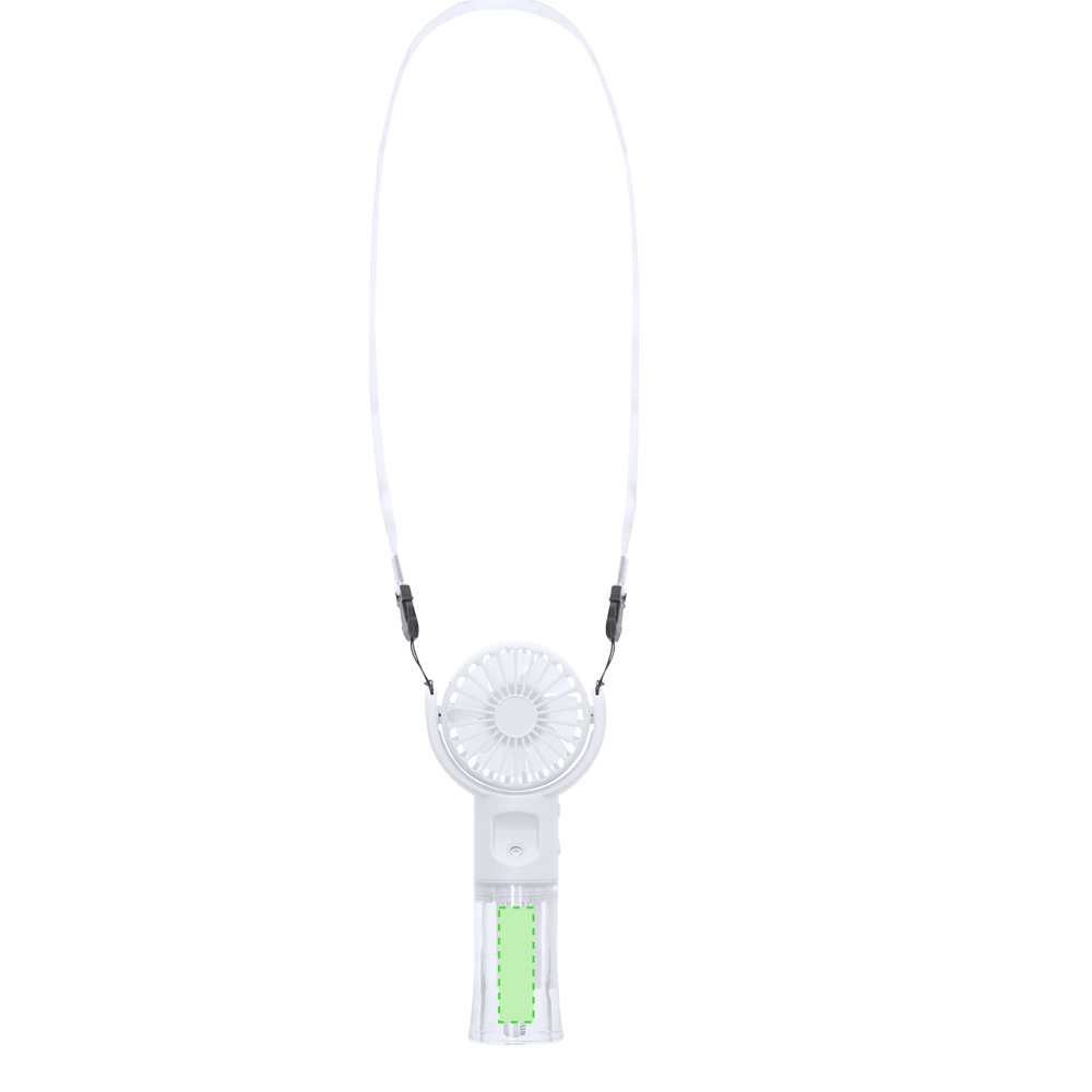 Ventilator mit integriertem Verdampfer. Verfügt über vier einstellbare Geschwindigkeiten, die über einen praktischen seitlichen Ein- und Ausschalter gesteuert werden. Enthält ein Spray-System in Form von Nebel, das von der Seite leicht aktiviert werden kann.Mit einem 20 ml Wassertank integriert im Griff, ideal zum Nachfüllen mit Wasser. Sein vielseitiges Design ermöglicht es, den Kopf des Ventilators zu drehen, um die Luft je nach Bedarf zu leiten, sei es auf flachen Oberflächen oder bequem zu transportieren dank des mitgelieferten Lanyards.Mit einer 800 mAh Batterie, kompatibel mit USB Typ C-Anschlüssen - Kabel enthalten -.